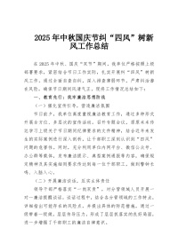 2025年中秋国庆节纠“四风”树新风工作总结