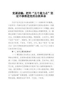 党课讲稿:把牢“五个着力点”坚定不移推进党的自我革命