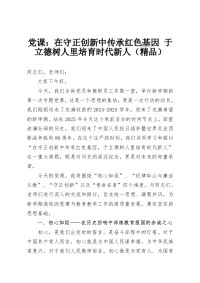 党课:在守正创新中传承红色基因 于立德树人里培育时代新人(精品)