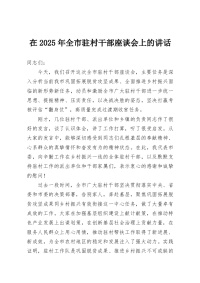 在2025年全市驻村干部座谈会上的讲话