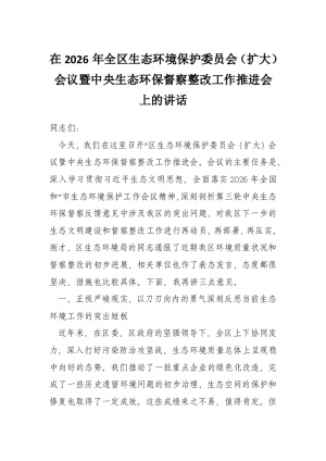 在2026年全区生态环境保护委员会(扩大)会议暨中央生态环保督察整改工作推进会上的讲话