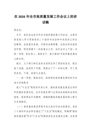 在2026年全市统筹发展和安全工作推进会上的讲话稿