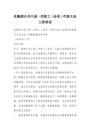 在集团公司六届一次职工(会员)代表大会上的讲话