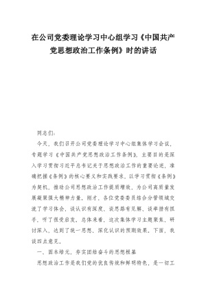 在公司党委理论学习中心组学习《中国***思想政治工作条例》时的讲话