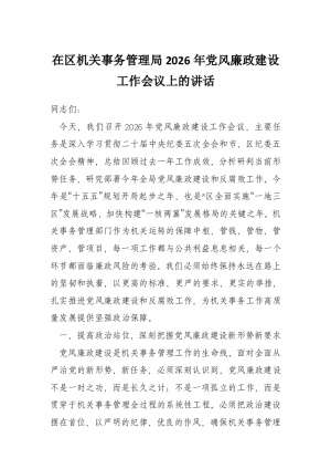 在区机关事务管理局2026年党风廉政建设工作会议上的讲话