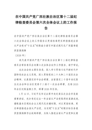 在中国***广西壮族自治区第十二届纪律检查委员会第六次全体会议上的工作报告