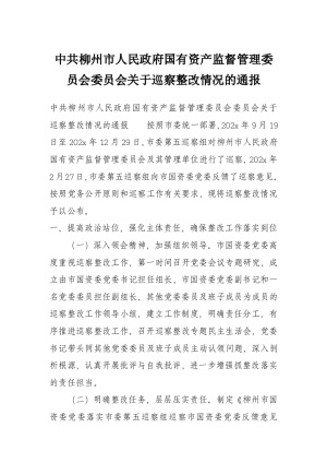 中共柳州市人民***国有资产监督管理委员会委员会关于巡察整改情况的通报