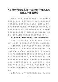 XX市水利局党支部书记2025年度抓基层党建工作述职