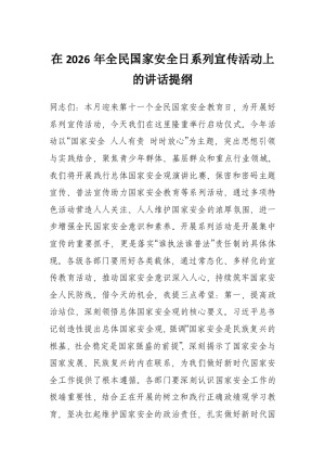 在2026年全民国家安全日系列宣传活动上的讲话提纲