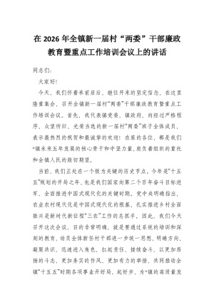 在2026年全镇新一届村“两委”干部廉政教育暨重点工作培训会议上的讲话