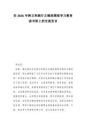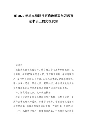 在2026年树立和践行正确政绩观学习教育读书班上的交流发言_2