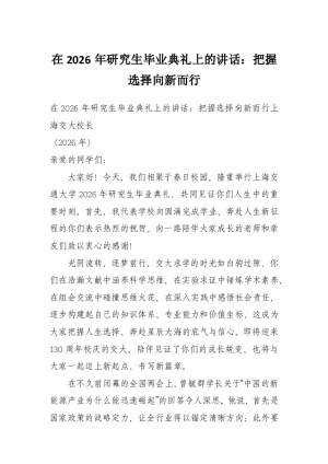 在2026年研究生毕业典礼上的讲话:把握选择向新而行