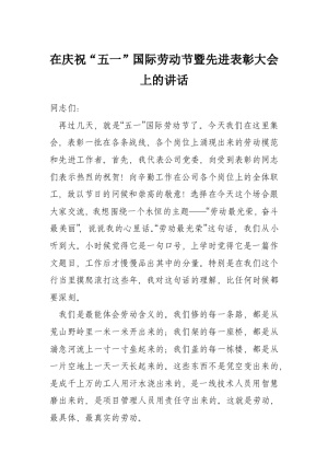 在庆祝“五一”国际劳动节暨先进表彰大会上的讲话