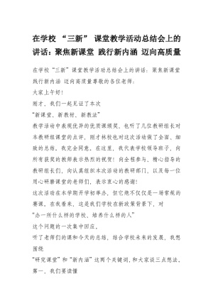 在学校 “三新” 课堂教学活动总结会上的讲话:聚焦新课堂 践行新内涵 迈向高质量
