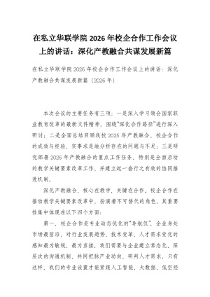 在私立华联学院2026年校企合作工作会议上的讲话:深化产教融合共谋发展新篇