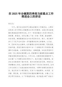在2025年全镇第四季度当前重点工作推进会上的讲话