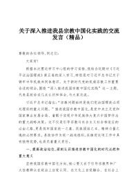 关于深入推进我县宗教中国化实践的交流发言(精品)
