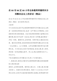 在XX市XX区XX小学全体教师师德师风专项整治会议上的讲话(精品)