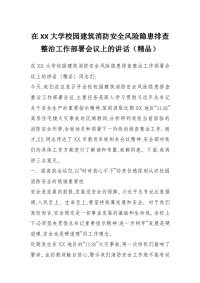 在XX大学校园建筑消防安全风险隐患排查整治工作部署会议上的讲话(精品)