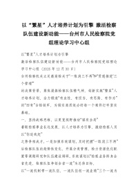 以“繁星”人才培养计划为引擎 激活检察队伍建设新动能——台州市人民检察院党组理论学习中心组