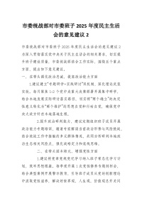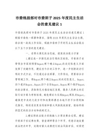 市委统战部对市委班子2025年度民主生活会的意见建议1