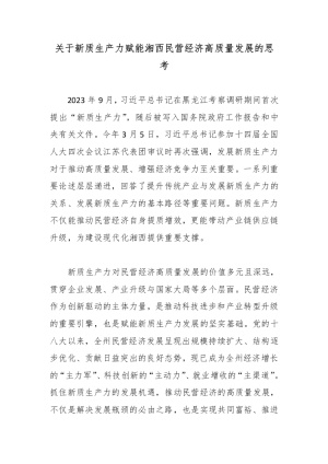 关于新质生产力赋能湘西民营经济高质量发展的思考