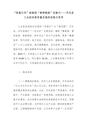 “筑巢引凤”破瓶颈“集群赋能”促振兴——丹凤县工业经济高质量发展的实践与思考