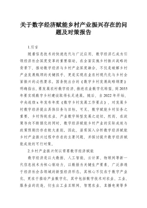关于数字经济赋能乡村产业振兴存在的问题及对策报告