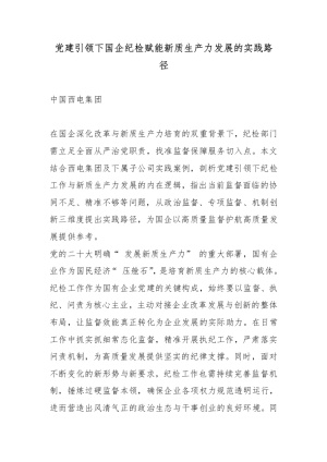 党建引领下国企纪检赋能新质生产力发展的实践路径