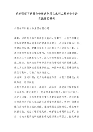 党建引领下党员先锋模范作用在水利工程建设中的实践路径研究