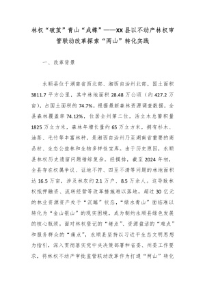 林权“破茧”青山“成蝶”——XX县以不动产林权审管联动改革探索“两山”转化实践