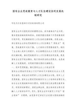 国有企业思政教育与人才队伍建设协同发展机制研究
