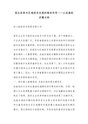 国企改革对区域经济发展的推动作用——以成渝经济圈为例