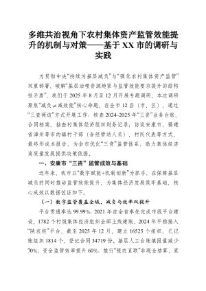 多维共治视角下农村集体资产监管效能提升的机制与对策——基于XX市的调研与实践