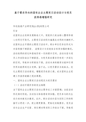 基于需求导向的国有企业主题党日活动设计与党员获得感增强研究