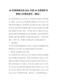 XX区园林绿化局2025年度XX自然保护区管理工作情况报告(精品)