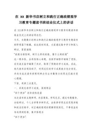 在 XX 市新华书店树立和践行正确政绩观学习教育读书班结业仪式上的讲话