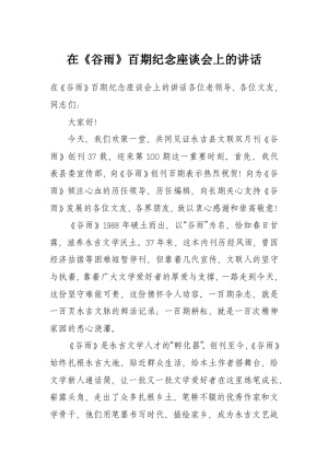 在《谷雨》百期纪念座谈会上的讲话
