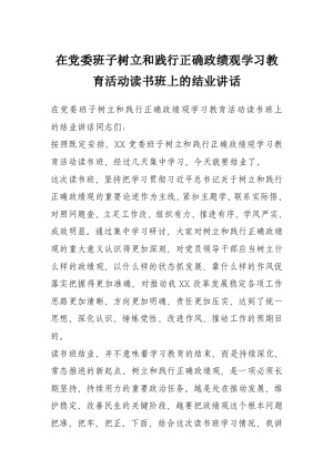 在党委班子树立和践行正确政绩观学习教育活动读书班上的结业讲话