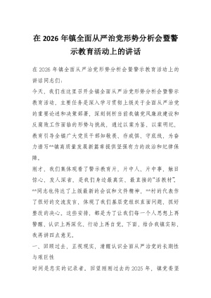 在2026年镇全面从严治党形势分析会暨警示教育活动上的讲话
