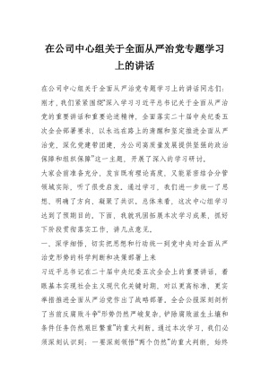 在公司中心组关于全面从严治党专题学习上的讲话