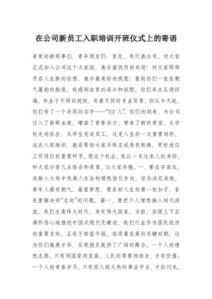 在公司新员工入职培训开班仪式上的寄语