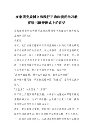 在集团党委树立和践行正确政绩观学习教育读书班开班式上的讲话