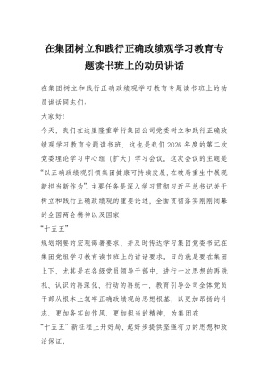 在集团树立和践行正确政绩观学习教育专题读书班上的动员讲话