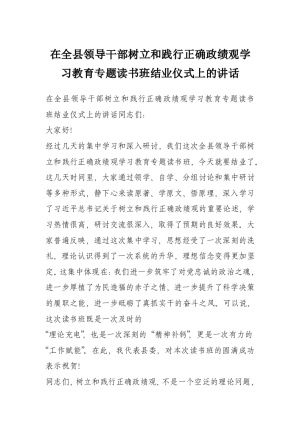 在全县领导干部树立和践行正确政绩观学习教育专题读书班结业仪式上的讲话