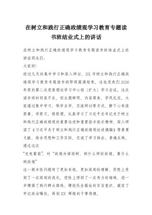 在树立和践行正确政绩观学习教育专题读书班结业式上的讲话