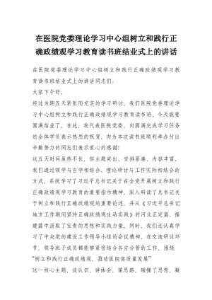 在医院党委理论学习中心组树立和践行正确政绩观学习教育读书班结业式上的讲话