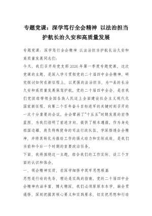 专题党课:深学笃行***精神 以法治担当护航长治久安和高质量发展