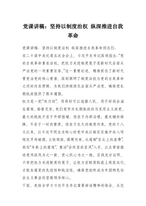 党课讲稿:坚持以制度治权 纵深推进自我革命