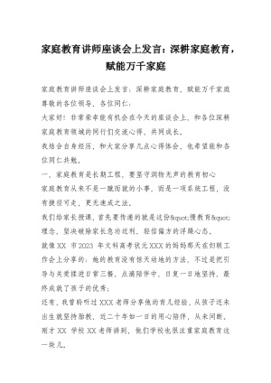 家庭教育讲师座谈会上发言:深耕家庭教育,赋能万千家庭